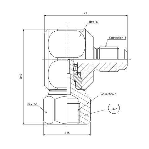 Raccordement 1 : 1/4'' BSPP femelle orientable, cône femelle 120°